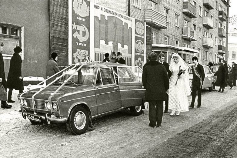 Сверкают кольца золотые, И чувства ваши так нежны. Мир и социализм неразделимы.«Свадьба». Фото- Михаил Блонштейн, 1977 г