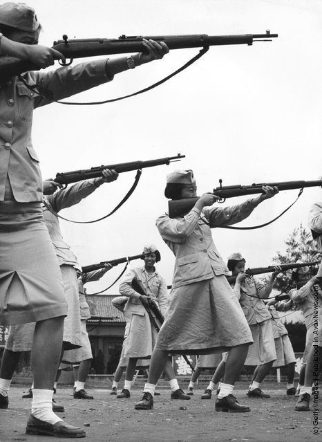 Обучение стрельбе в китайской националистической женской армии. Гражданская война в Китае. 1950 г.