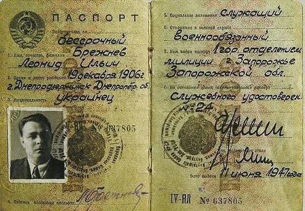 Паспорт Леонида Ильича Брежнева образца 1947 года.