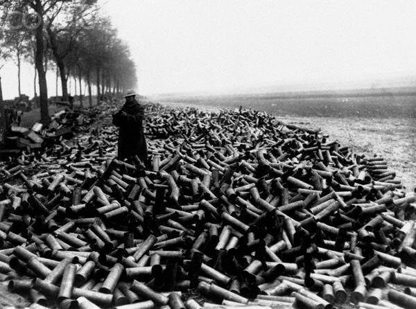 Пустые гильзы от снарядов — продукт Первой мировой войны. Аррас. Франция. Апрель 1917г.