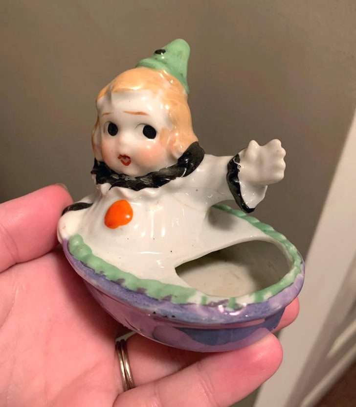 Похоже на керамическую чашку, с фигуркой клоуна. Сделано в Японии.