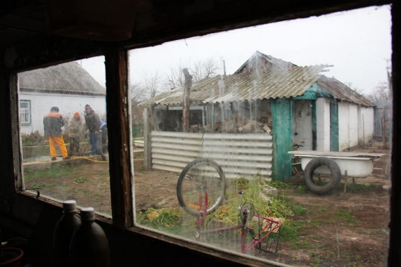 Гордость Украины находится в селе Красное, в пяти километрах от азовского Мариуполя и 750 — от Киева. В центре поселка стоит серый, едва оштукатуренный дом. Вместо центрального отопления — печь, дрова — на улице, за молоком ходят к соседям.