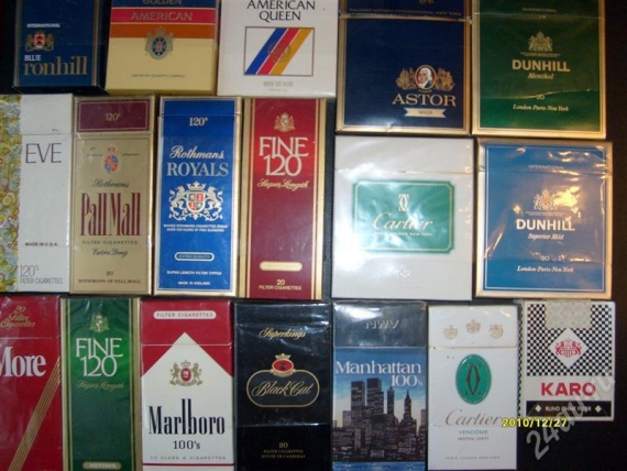 Екнуло в груди? Названия 90х: "ПэллМэлл", "Магна", "Соверейн", "Файн 120", "Лаки Страйк", "Море" :)Кто во сколько начал покуривать, признавайтесь :) Я — в 13. В том же году и бросил. Навсегда. Первыми моими купленными сигаретами были "Родопи" ("курите, девочки, Родопи, чтоб титьки не росли на ж.пе", "курите, мальчики, ПалМал, чтоб что-то там не отпал"). А до этого, стыдно признаться, собирали бычки, крошили остатки в газетку и смолили под балконом. За счастье было найти с ментолом… Блин, давайте колитесь — вы так делали? Или мы одни такие нищеброды были? 8-0 Стыдно вспоминать даже… А вот тут есть довольно крутые пачечки — такие мало у кого были: