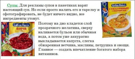 Довольно познавательная подборка фактов о рекламе продуктов, которую я советую каждому прочитать и взять себе на заметку.Производители продуктов питания зачастую обманывают покупателей, рекламируя свой товар, прибегая к различным хитростям и уловкам.Вот, например, вы знали о том, что производители пива для рекламных роликов кидают в бокал с этим напитком стиральный порошок, который дает красивую и устойчивую шапку из пены? Обязательно смотрим далее.