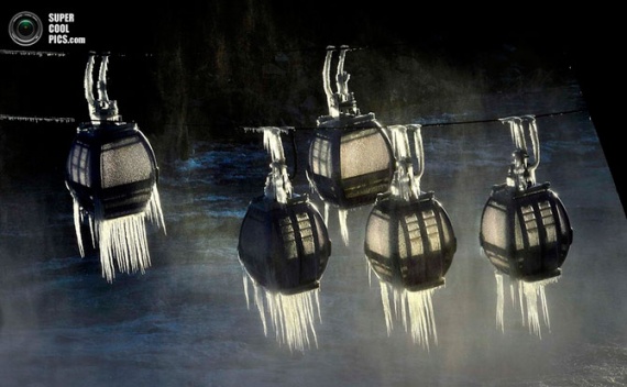 Замершие подъемники на водопадах близ Спокана, штат Вашингтон, США.