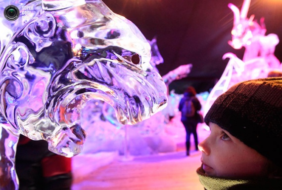 Мальчик рассматривает тигра изо льда на фестивале ледовых скульптур в Брюгге, Бельгия. supercoolpics.com