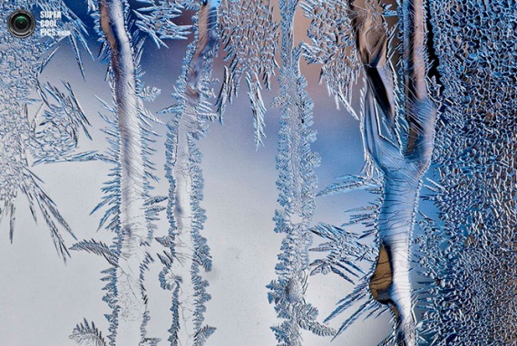Причудливые морозные рисунки на окне, Цюрих, Швейцария.