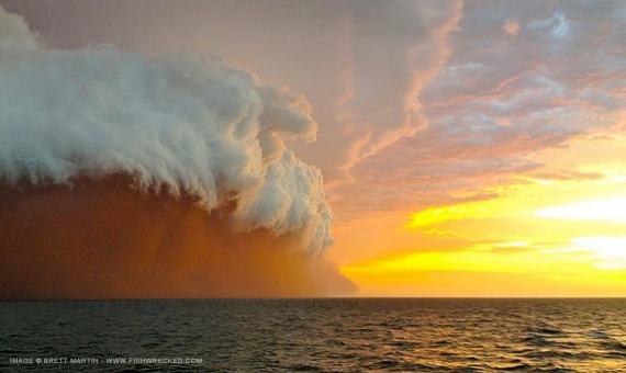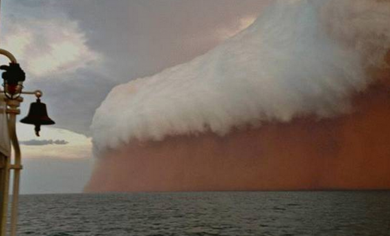 Есть вещи и явления, о которых мы знаем, читаем, слышим, но своими глазами никогда не видели.Так, например, благодаря этим фотографиям и видео, я смогла впервые в своей жизни увидеть песчаную бурю. Дело было у берегов Австралии. Очевидцы были поражены масштабностью пыльного облака. По всей видимости буря пронеслась ветром по жаркой австралийской пустыне прежде, чем отправилась прямиком в Индийский океан.Как утверждают метеорологи, это один из редчайших видов песчаных бурь, и редко кому удавалось заснять данное явление на камеру. Так что, наслаждайтесь зрелищностью, друзья!