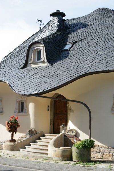 Этот сказочный домик построен супружеской парой врачей в городе Целль на реке Мозель, Германия.К созданию дома они подошли с фантазией! Каменная черепица, песчаник и другие природные материалы использовались для постройки.