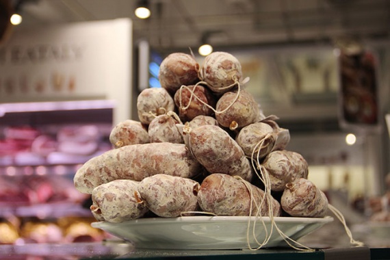 Перейдём к другому месту, ОБЯЗАТЕЛЬНОМУ к посещению в Риме, если, конечно, вас интересует еда.Когда мы туда зашли, мы сразу поняли, что хотим там жить! Этот магазин называется «EATALY». Находится он далековато от центра, но это того стоит, честно! Поверьте мне, как искушённому едоку :) Тут есть ВСЁ! Магазин гигантский, 4 этажа. Этажи разбиты по темам… ох, эти мясной и сырный этаж… Сыры и мясо, например, разбиты по отделам – регионам. Хочешь мясо из Лацио, хочешь из Ломбардии… и т.д. Также тут более 20 кафешек, которые разбиты по этажам. Вообще, однозначно, ехать надо.