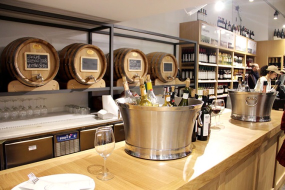 Кафе «Моцарелла». На заднем плане стенды с разными сырами.