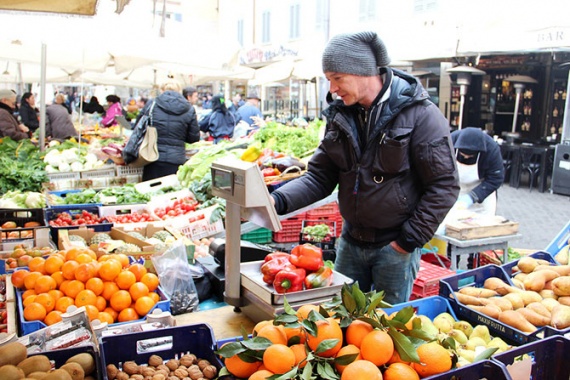 Мы очень любим рынки… Они часто отражают лицо самого города… в таком концентрированном образе.Самый известный продуктовый рынок в Риме находится на площади Campo dei Fiori. Рынок работает с 6 утра до 14.00 дня, кроме воскресенья. Сказать, что это был саааааааамый – сааааааамый рынок из всех, что мы посетили, я не могу. Но тем не менее, там тоже классно.Не забываем! Гуляем по рынку… смотрим на продукты, но и на людей тоже