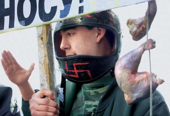Протест скинхедов около "Макдональдса". Москва 2002 год.