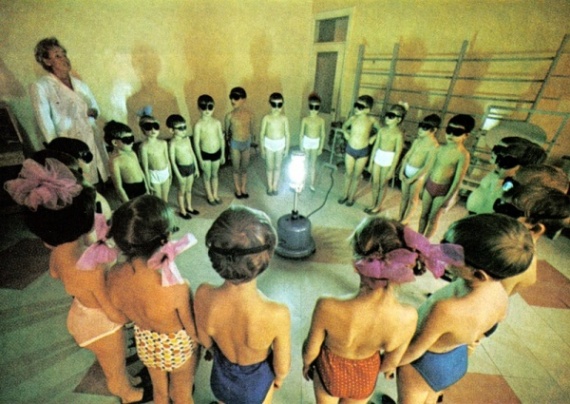 «Детский сад в Мурманске. Недостаток витамина Д зимой компенсируется облучением кварцевой лампой. Дети в СССР — это привилегированный класс» — говорит Дин.