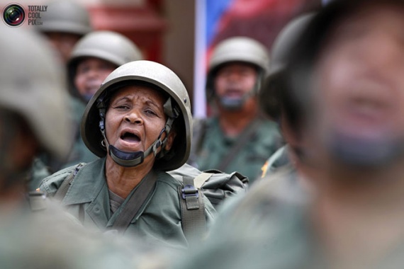 Венесуэльские гражданские резервисты участвуют в мероприятии в честь 7-летия возвращении к власти президента Уго Чавеса, после короткого переворота в Каракасе