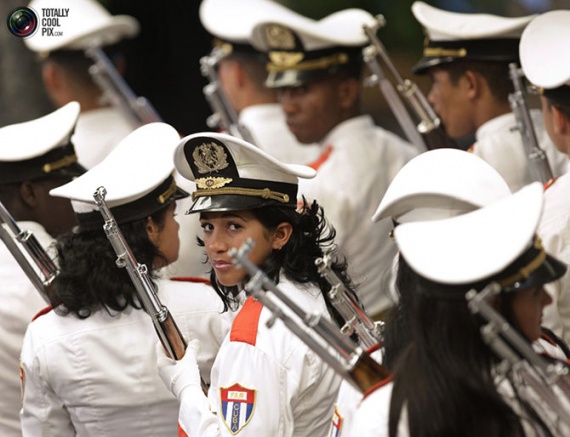 Солдат из почетного караула оглядывается назад, официальная церемония встречи премьер-министра Сент-Люсии Стивенсон Кинг в Гаване