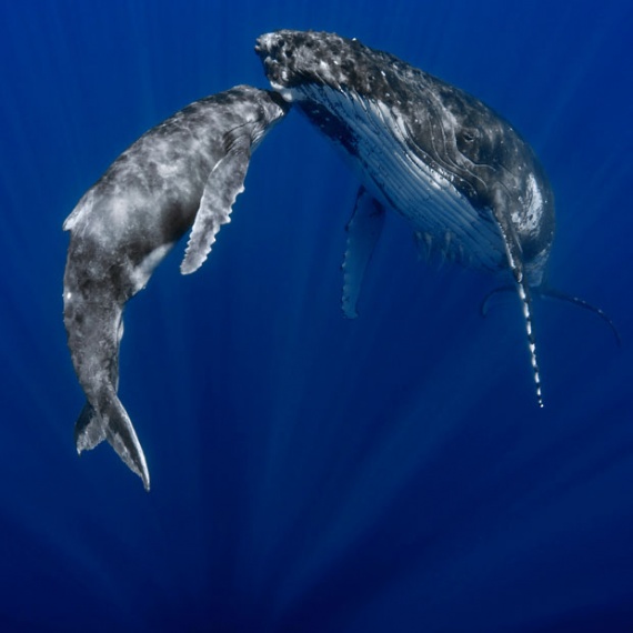 Горбатый кит, мать, плавает с детенышем и как будто нежно целует его в голову. Профессиональный фотограф Джон Корнфорт захватил трогательный момент у берегов Тонга в южной части Тихого океана.