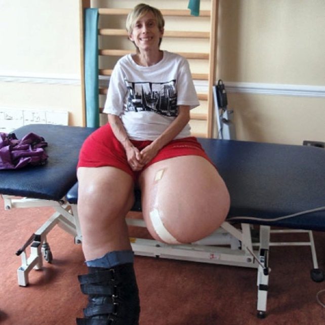 Мэнди Селларс из Ланкашира, Великобритания, был поставлен такой же диагноз, как и Джозефу Мерику – синдром Протея. Это привело к тому, что ноги Мэнди стали невероятно огромными, общим весом в 95 кг и диаметром в 1 метр.