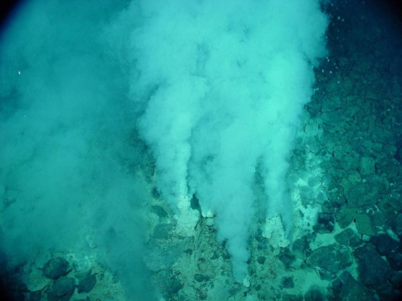 6. Глубинные морские источники, иначе известные как гипотермальные вентили, являются трещинами вдоль дна океана, которые выпускают перегретую воду из глубин земной коры. Горячая вода насыщается с растворенными полезными ископаемыми, главным образом сульфидами, которые кристаллизуются, чтобы создать подобное дымоходу отверстие вокруг каждого вентиля. Когда перегретая вода в вентиле достигает холодной океанской воды, много полезных ископаемых выпускаются, создавая отличительный черный цвет. Глубокие Морские вентили были сначала обнаружены в 1977 около Островов Галапагос Национальным управлением океанических и атмосферных исследований. Они, как полагают, существуют как в Тихом, так и в Атлантическом океане, в среднем на глубине в 2100 метров.