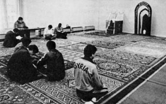 «На втором этаже культурного центра Олимпийской деревни были расположены помещения, где верующие могли посещать религиозные службы. Были приглашены три римско-католических и три православных священника, три лютеранских пастора, три баптистских пресвитера, один англиканский священник, два мусульманских имама, два раввина и кантор, и два буддийских ламы. Три наиболее многочисленных религиозные общины в Москве – православная, мусульманская и еврейская – оборудовали три зала, каждый площадью 100 квадратных метров, в которых можно было проводить службы для 200 человек (в каждом из них)». То есть ничего отдельно не строилось, а просто три комнаты отводились под религиозные нужды. «В 1980 году в Москве проходили Олимпийские игры. По уставу Международного Олимпийского комитета в олимпийской деревне должен быть храм или часовня, чтобы спортсмены имели возможность молиться перед соревнованиями. В те годы в нашей стране ещё не восстанавливались запустевшие храмы и тем более не строились новые. Но, несмотря на это, 2 июля 1980 года в столице СССР была освящена часовня в честь Владимирской иконы Божией Матери — Покровительницы Москвы. В этой часовне среди других икон находился один из списков святыни. – В прошлом присутствие священников на Олимпийских играх в нашей стране не афишировалось, – рассказывает протоиерей Николай Соколов, настоятель храма святителя Николая в Толмачах при Третьяковской галерее. – Однако ещё в 1980 году, когда Олимпиада проходила в Москве, я, работая референтом Святейшего Патриарха Пимена, участвовал в создании часовни в Олимпийской деревне. Мы долго выбирали место, собирали для неё утварь, а в то время это было непросто. Однако после завершения Олимпиады в Москве, по словам отца Николая, «часовня была закрыта, так как её освящали лишь на время соревнований в одном из жилых домов Олимпийской деревни». Зал-мечеть.