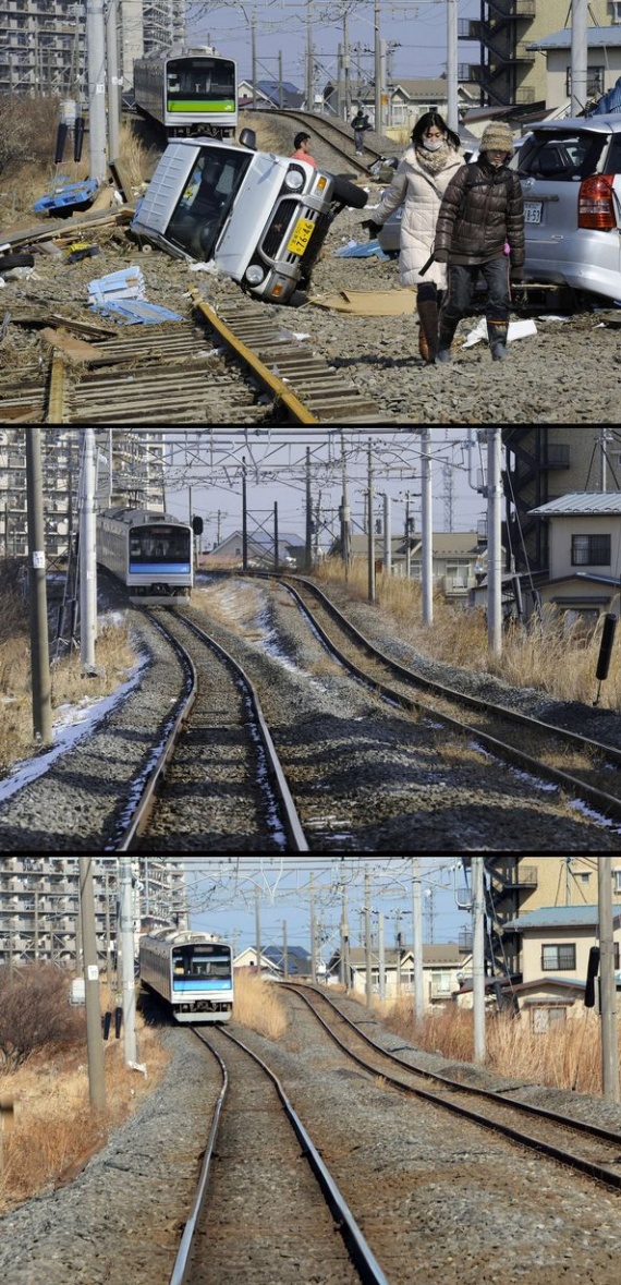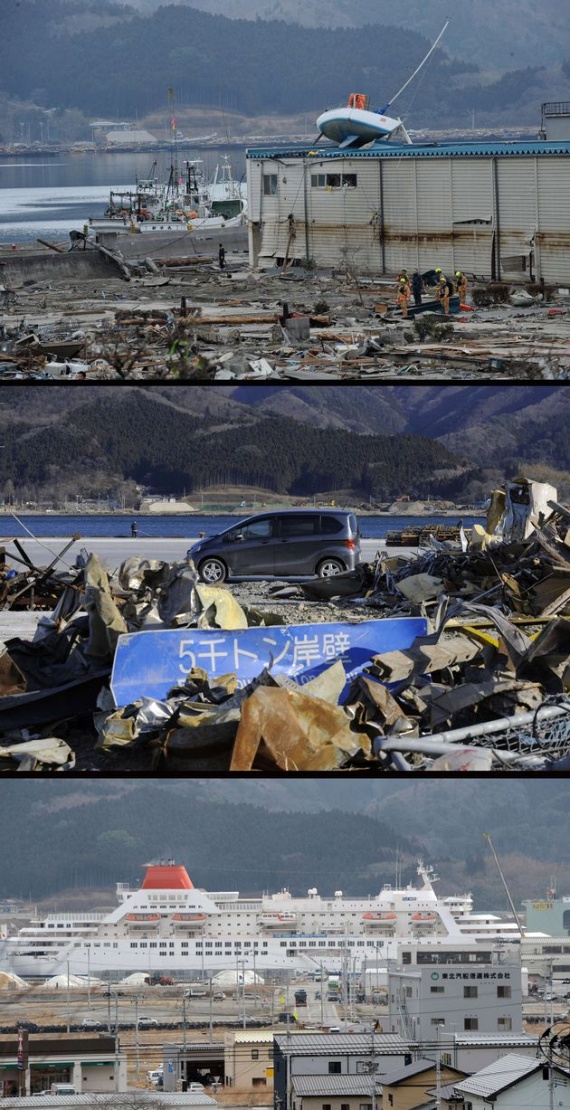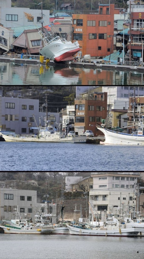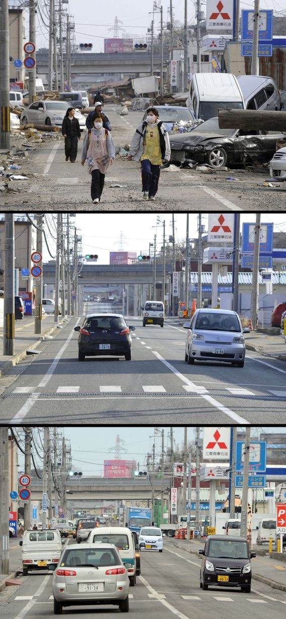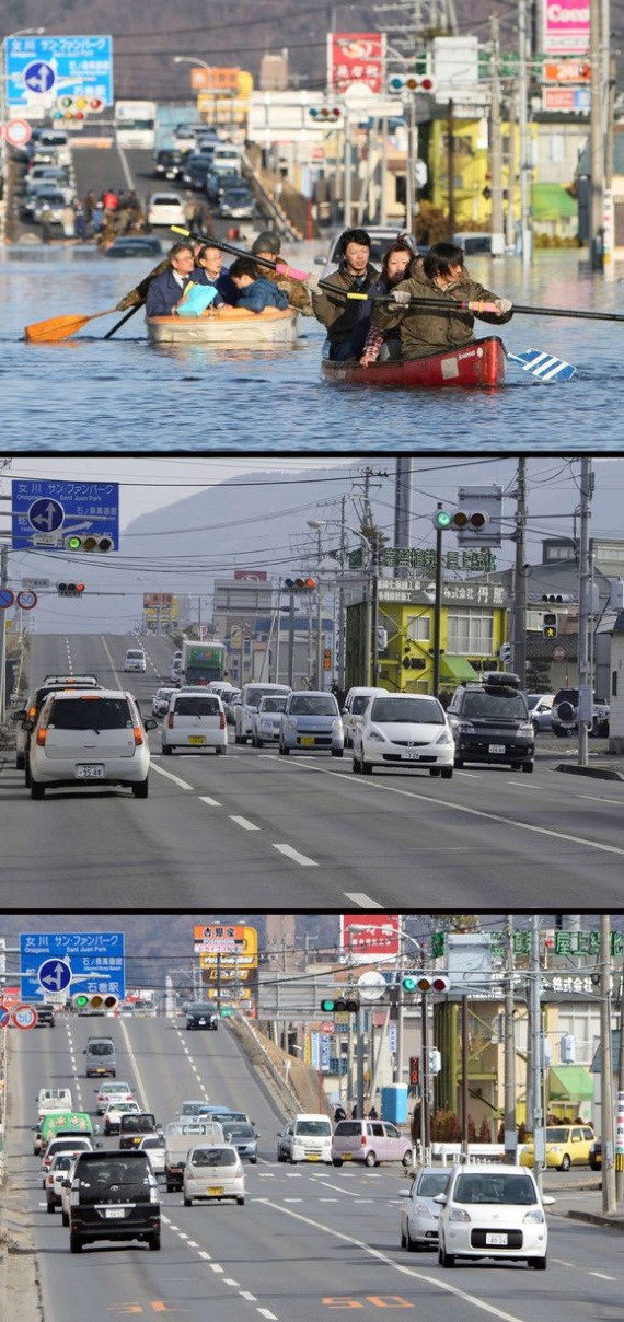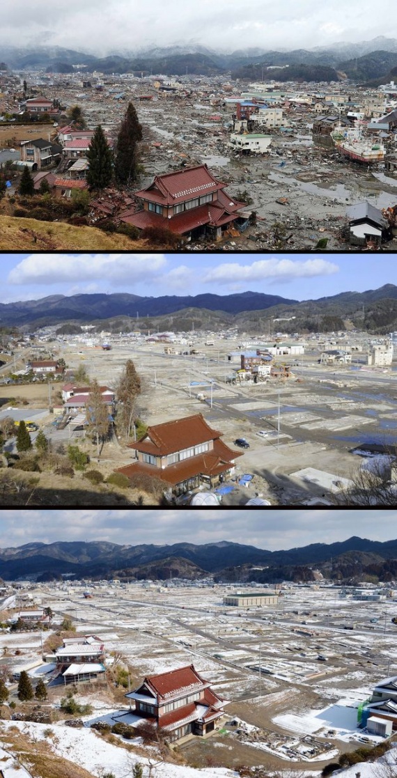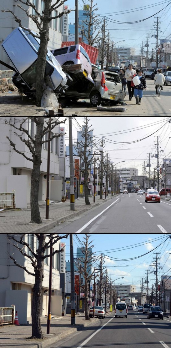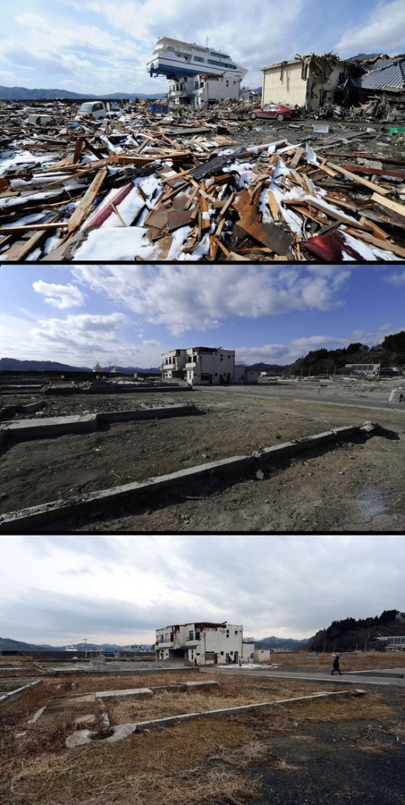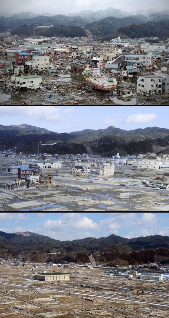 Два года назад в Японии произошло сильнейшее разрушительное землетрясение, последствия которого во всем мире будут ощущаться еще много лет. Мощное землетрясение магнитудой 9 баллов вызвало волны цунами высотой 30-40 метров, которые обрушились на побережье и смывали в океан целые города. Власти Японии объявили землетрясение самым разрушительным в истории страны. Как выглядят разрушенные стихией районы сегодня? Удалось ли Японии ликвидировать последствия цунами? Фотографии одних и тех же мест, сделанные сразу после катастрофы, в марте 2012 года и сейчас.