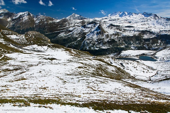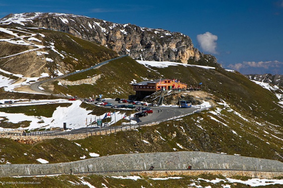 Ну вот мы наконец-то и на самой дороге. Немного исторических фактов: она была запущена в эксплуатацию в 1935 году. Однако, когда в 1924 году группа австрийских экспертов представила план строительства дороги через перевал Хохтор, к нему отнеслись со скептицизмом. В то время в Австрии, Германии и Италии было всего 154 тыс. частных автомобилей, 92 тыс. мотоциклов, и 2000 км асфальтированных дорог. Австрия страдала от катастрофических экономических потерь в Первой мировой войне, сократила в семь раз свои размеры, потеряла свои международные рынки и страдала от разрушительной инфляции.