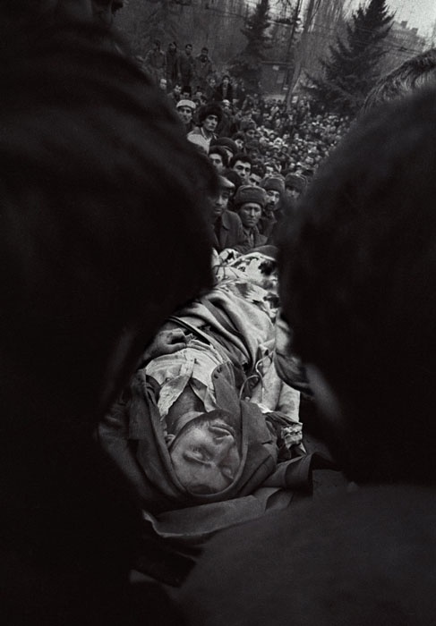 Я снимал что-то в Грузии — и вдруг сошла лавина в Сванетии. Один мужчина-сван оказался внизу, когда сошла лавина на его село, и вот по горным дорогам мы вместе поехали на место трагедии. Наша дорога заняла три или четыре дня. Приехали — всё селение разрушилось. Я начал снимать. Никого не было на улицах, никого абсолютно. И вдруг я увидел, вот к этому остатку дома поднимаются вот эти люди — мужчина, женщина и ребенок, они несут в руках стаканчики маленькие с чачей или с водкой. У мужчины на груди портрет погибшего под лавиной его родственника. Я понимаю, что я сейчас могу сделать достаточно такой жесткий кадр. Они идут. Я знаю, где его делать, знаю, как его делать. Жду. Вот они подходят, я поднимаю аппарат к глазам, один раз нажимаю. Тишина полнейшая — горы. И мужчина этот на меня посмотрел. За спиной у меня стоит мой сван, с которым я приехал, вот он мне положил руку на плечо и говорит: «Ему не нравится, что ты фотографируешь».И я не стал больше снимать, не сделал ни одного кадра. Женщина плакала, рыдала, на колени бросалась и снег разгребала, и ребенок стоял в стороне такой странный, с какой-то шапкой, на один глаз натянутой, и мужчина. Я не стал снимать. А когда все это закончилось, мужчина подошел ко мне и пригласил на поминки в землянку. Чужих приглашать на такие мероприятия там не принято, но меня пригласили за проявленное уважение.
