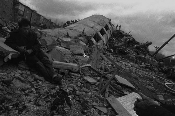 Главный инженер швейной фабрики. Его выкапывали из завалов разрушенной фабрики 2,5 часа, всё это время я стоял под качающейся плитой на торчащей балке. Понятно, что за два с половиной часа я мог наснимать массу фотографий, но какая-то сила держала меня на этом небезопасном месте. Три, четыре кадра — всё что я успел снять со своей позиции. Мог ничего не снять. И все-таки это один из лучших кадров вот в этой серии. Вот кто мне помог? Я склонен думать на Него. Ну да, а может быть просто так получилось.Когда я приехал в Москву, показал фотографии, «Огонек» дал номинально один разворот достаточно спокойных фотографий. И мне было очень больно.Я надеялся, что напечатают больше фотографий и более сильных. И я отправил это все в «Тайм», и «Тайм» вышел с главным репортажем номера. И они номинировали меня за этот репортаж на лучшего репортера года.Первый Международный конкурс парикмахеров в Москве