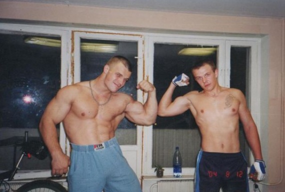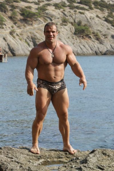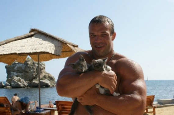 Его зовут Денис Цыпленков. Его данные: Рост — 185 см, Вес — 140 кг, Обхват бицепса – 60 см, Обхват предплечья – 57 см, Обхват запястья – 24 см.