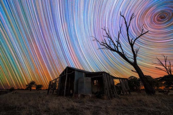 Снимки австралийского фотографа Линкольна Харрисона (Lincoln Harrison), на которых запечатлены звездные следы в ночном небе Австралии. Для получения этих фотографий, снятых с большой выдержкой, было затрачено 15 часов!