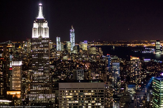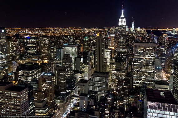 Следущие фотографии сняты вечером вот с этой высотки — GE Building в Рокфеллер-центре (не путать с General Electric Building):