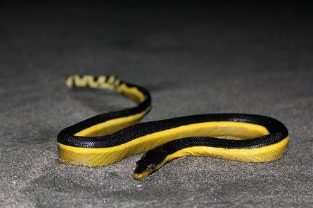 Древолазы славятся своими красивыми цветами. Это одни из самых прекрасных существ, которые только могут вам встретиться, но в их красоте таится страшный секрет. Люди с удовольствием взяли бы их подержать на руках, но этого нельзя делать без соответствующей защитной одежды. Древолазы обладают ядовитой кожей, которая может быть очень опасной для человека. Их выделения также ядовиты. Именно так они избегают того, чтобы стать чьей-то добычей. В буквальном переводе с английского языка, название этих лягушек звучит как «ядовитые дротиковые лягушки». Такое название было дано им из-за того, что племена использовали их яд для изготовления ядовитых дротиков и стрел многими столетиями. Их яд практически стал предметом домашнего обихода этих племён. Лягушки уникальны именно тем, что к их коже и выделениям нельзя притрагиваться. Однако не все древолазы способны убить человека своим ядом. На самом деле, существует только три вида, которые могут это сделать. Обычно древолазы сразу не убивают вас с одного прикосновения, но вы почувствуете себя очень плохо. Яд изначально вызовет сильное ухудшение состояния вашего здоровья, потому что технически он не попадает в кровь, когда вы прикасаетесь к лягушке, он остаётся в вашей коже. Ваша кожа действует как фильтр между ядом и кровью. Поэтому, очевидно, что некоторое количество всё же попадёт в кровь, но не так много, как может попасть в случае контакта с открытой раной у вас на коже. Небольшое количество яда не убьёт вас, даже если оно попадёт прямо в кровь. Но опять-таки – вам станет очень плохо. Ужасный листолаз (Golden Dart Frog) может убить своей версией яда от одного прикосновения. Он является самым ядовитым древолазом в мире. На него опасно даже смотреть. Зоопарки содержат этих крошечных убийц в специальных клетках. Если даже эксперты по животным их не трогают, то вы и подавно не должны. Их цвет, бесспорно прекрасен – но это самое лучшее предупреждение. 5. Двухцветная пеламида (Yellow Bellied Sea Snake)