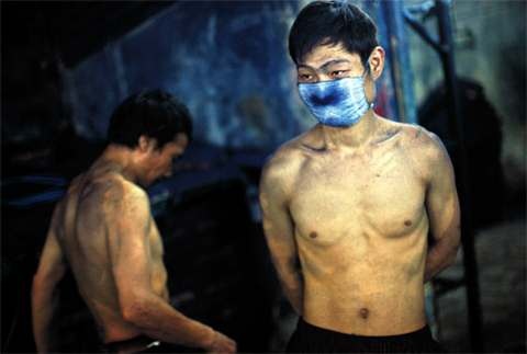 Безлунная ночь спустилась на старый кирпичный склад в Чжуншане, одном из быстро растущих городов Южного Китая. Внутри все залито ярким неоновым светом. Тысячи пар джинсов — помещение просто забито ими. Рабочие в бешеном темпе шлифуют ткань, стремясь придать ей вид элегантной потертости. Машины, которыми они пользуются, — неуклюжие, шумные механизмы, свисающие с потолка, — снимают с ткани верхний слой, наполняя воздух липкой синей пылью. Пыль оседает на коже и забивает легкие.