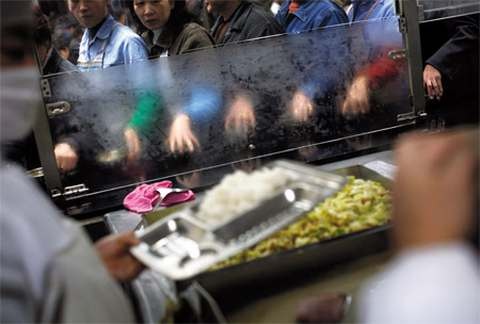 Длинная очередь в фабричной столовой за рисом и похлебкой Когда появляются свободные деньги, предприниматели могут позволить себе отдых: карты, караоке, массаж ног и другие удовольствия. Этот мир принадлежит мужчинам. Когда в ресторане они обсуждают дела, их жены и дети сидят за соседним столом. Рисовая водка, пиво, «Ред Булл» и сигареты постоянно передаются по кругу — отказываться не принято. Хуань пребывает в самом приподнятом настроении. «Мне везет», — шепчет он себе под нос. Младшие коллеги спешат присоединиться к компании, заметив ее с другой стороны улицы. Рядом с Хуанем сидит Вэй Фан, важный сорокалетний господин со стрижкой ежиком, владеющий прибыльной джинсовой фаб-рикой среднего размера. В этот вечер, опьяненный рисовой водкой и собственным успехом, он раздает по¬учения тем, кто готов следовать его примеру. «Инвестиции, инвестиции, инвестиции», — говорит Вэй, подчеркивая каждое слово энергичным движением указательного пальца.