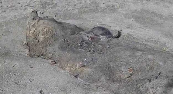 По сведениям британского таблоида The Sun, на прошлой неделе глазам новозеландцев, прогуливающихся по пляжу, предстала странная картина: из песка торчала часть огромной туши.