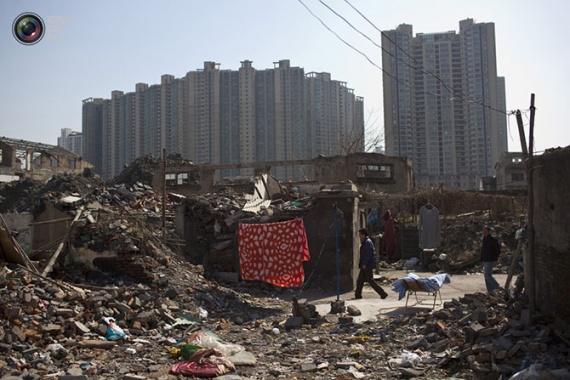 Снос старых жилых домов в Шанхае.