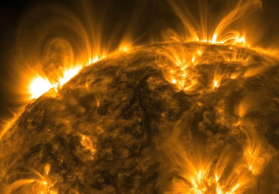 Плазменные петли на Солнце, 17 октября 2012. Они настолько огромные, что могли бы опоясать несколько планет размером с Землю.