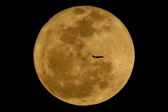 Самолет на фоне восходящей Луны, 25 февраля 2013.