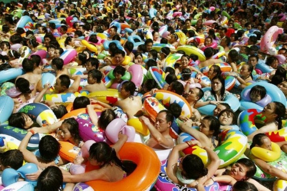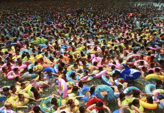 В течение пиковых дней лета, когда высокая температура становится невыносимой, бассейны окрашиваются в бунт цветов и заполняются людьми до отказа. Тысячи людей окунаются в воду, чтобы избежать высокой палящей температуры. общественные бассейны Китая заполнены настолько, что в них едва можно пошевелиться, не говоря уже о том, чтобы плавать