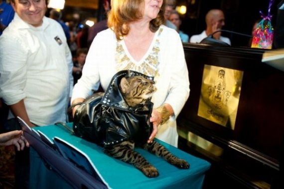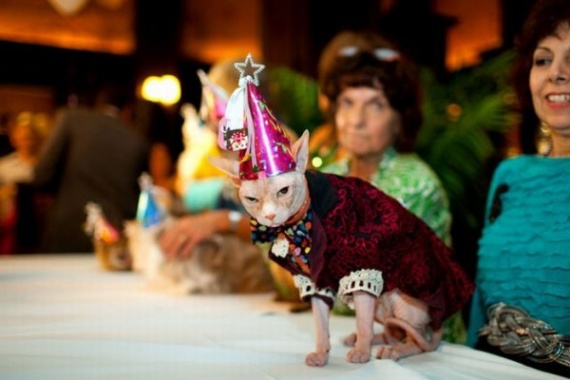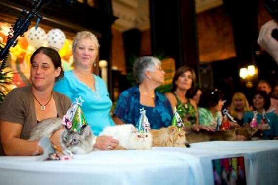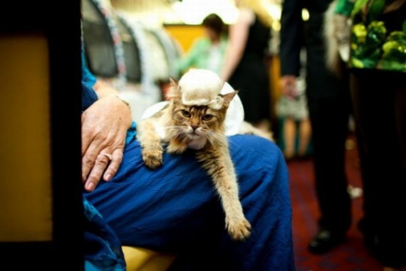 Сумасшедшие хозяева не дают покоя своим питомцам.Похоже котам эта идея не очень нравится…