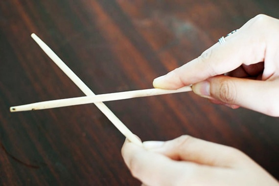 6. Иногда палочки, hashi, бывают не очень хорошего качества. Чтобы убрать с них лишние щепочки, их трут друг о друга.