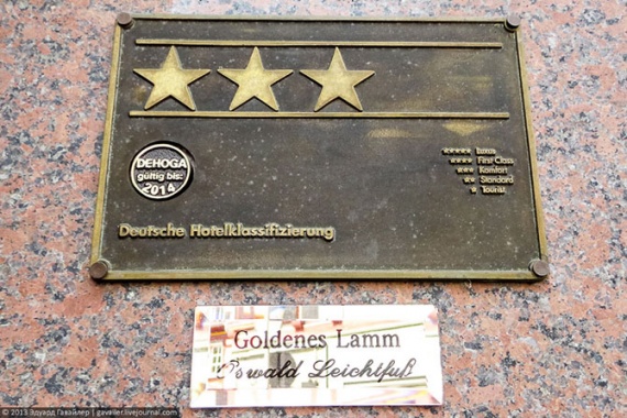 На гостиницах в городке висят официальные таблички с количеством звезд и «печатью» с их сроком действия. Оценивает гостиницы и выдает такие вещи специальная организация в Германии — DEHOGA.