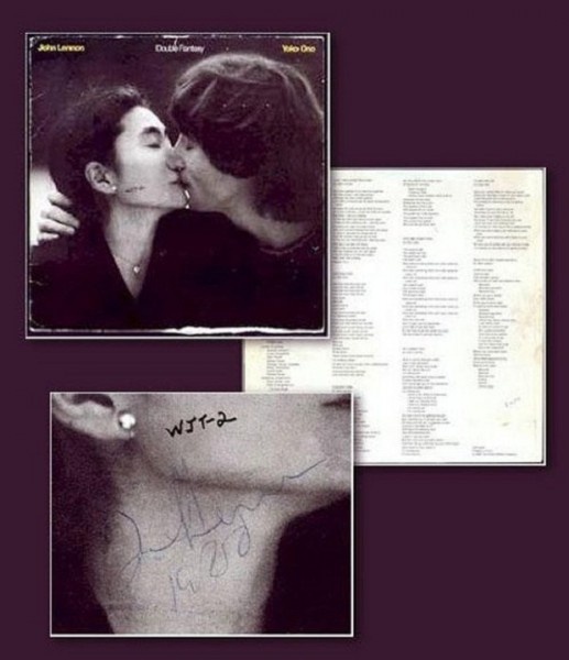 В 1999 году на аукционе была продана та самая копия альбома Джона Леннона и Йоко «Double Fantasy», на которой певец поставил автограф для своего будущего убийцы Марка Чэпмена за 5 часов до собственной гибели. Пластинку нашли в декоративной кадке для цветов рядом с местом преступления. На конверте присутствуют отпечатки пальцев Чэпмэна: в свое время альбом послужил одним из доказательств обвинения против убийцы. Цена раритета: 460 000 долларов США.