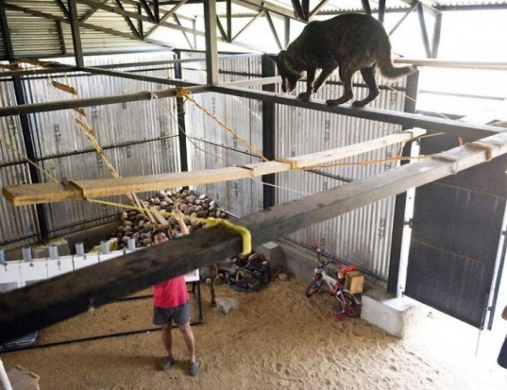 6. Овчарка Ишак нападает на тренера Идоха во время урока дрессировки. Несмотря на спецкостюм, следы от укусов Ишака все же остались на руке тренера.