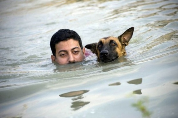 1. Масуд Ахмед и двухлетняя бельгийская овчарка по кличке Син во время водной части дрессировки. (© Nick Cunard/eyevine/ZUMA)
