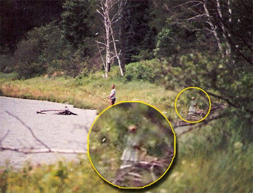 10. «Я сфотографировала своего мужа, когда мы рыбачили у одного из озёр в Висконсине. На этом озере нет никакой лодочной станции, и домов в округе тоже нет. Я уверена, что мы с мужем были в этом месте одни. Однако на фотографии ясно видна фигура маленькой девочки в капоте и переднике».