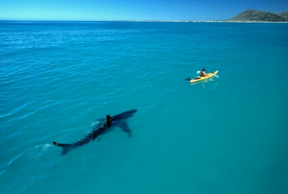 Фотографии которые потрясли всемирную сеть в разное время.Акула, преследующая байдаркуВ сентябре 2005 года журнал Africa Geographic опубликовал снимки больших белых акул у побережья Южной Африки. Среди них оказался и этот, где 4-х метровая хищница преследует байдарку.