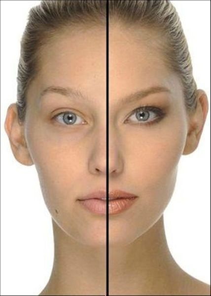 На одной стороне лица есть макияж, на другой нет. Смотрим, что получилось.
