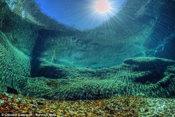 Обычно фотографируют ее сверху, с гор. Но 38-летний фотограф Клаудио Газзароли (Claudio Gazzaroli) посетил реку в месте, где над ней сооружен арочный мост, известный под названием «Римский мост».Раньше он фотографировал эту местность, как и все туристы — сверху, но теперь захотел попробовать заснять знаменитый туристический объект с нового ракурса – из-под воды. Дайвингом фотограф занимается давно, именно это выгодное преимущества послужило удачному созданию таких уникальных и красивых фотографий, сделанных сквозь многометровую толщу воды.