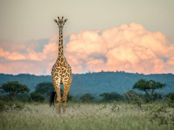 Этот снимок был сделан совершенно случайно в Танзании. Фотограф снимал небо в закатное время, но случайно оглянувшись, увидел это прекрасное грациозное животное, медленно идущее по направлению к холмам. (Peter Stanley)